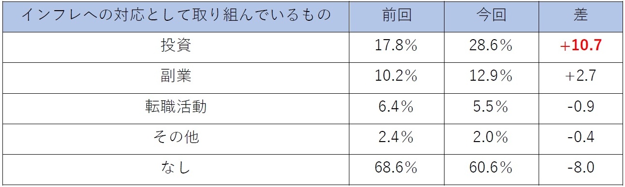 3.インフレへの対応として投資に取り組む人が10.7ポイント増加