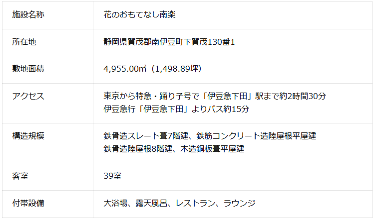 伊豆下田エリア屈指の毎分200Lを超える自家源泉を保有し、多人数利用も取り込める全室50m2以上の広い客室を有する旅館