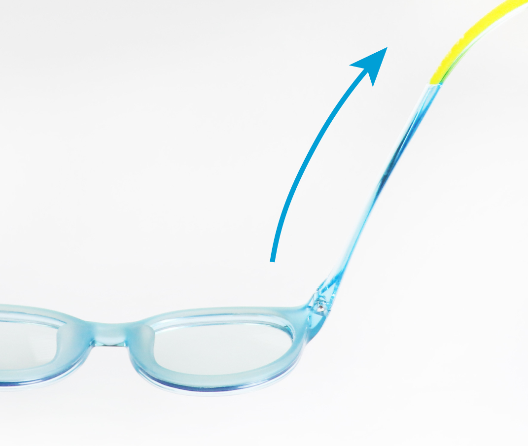 弾力性の高いテンプルが頭部を優しく包み込むフレーム構造を採用し、さらにテンプル内側のラバー素材がずれを防ぎ、快適かつ高いフィット感を実現しました。子どものタフな動きや激しいスポーツにもしっかりと追従し、快適なかけ心地が持続します。