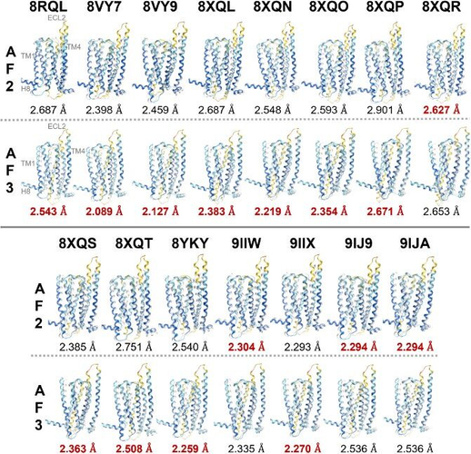 ●苦味受容体25種類の構造を、AIで網羅的に予測。実験構造との比較で予測の高精度を実証