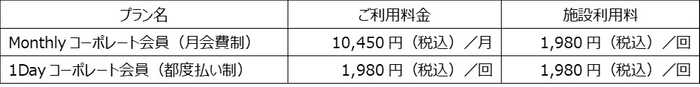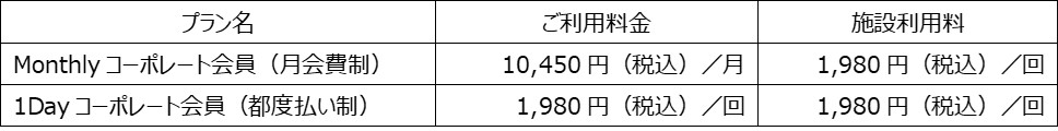 ※施設利用料は、ルネサンスで登録の法人会員がオアシスをご利用の場合/オアシスで登録の法人会員がルネサンスをご利用の場合の料金です。