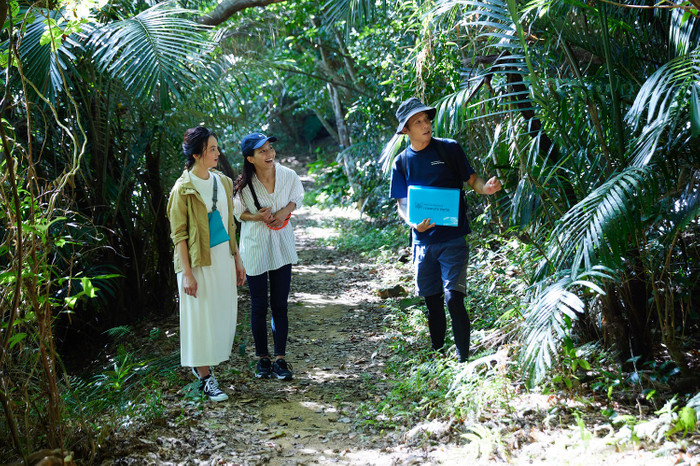 西表島愛に溢れたホテルスタッフが、島特有のエコシステムの魅力をガイドします。ホテルスタッフには昆虫や植物などそれぞれ得意な分野があり、昆虫に詳しいスタッフは倒木があればそれが虫たちの作る家の材料になる話をします。植物に詳しいスタッフは倒木をみて、周りの若い木々に太陽があたり、自然が更新される話など、それぞれの視点でみることで、おもしろさの伝わり方も変わるはずです。多くの生物の存在、エコシステムがあるからこそ西表島の自然が豊かであることに気づくことができます。