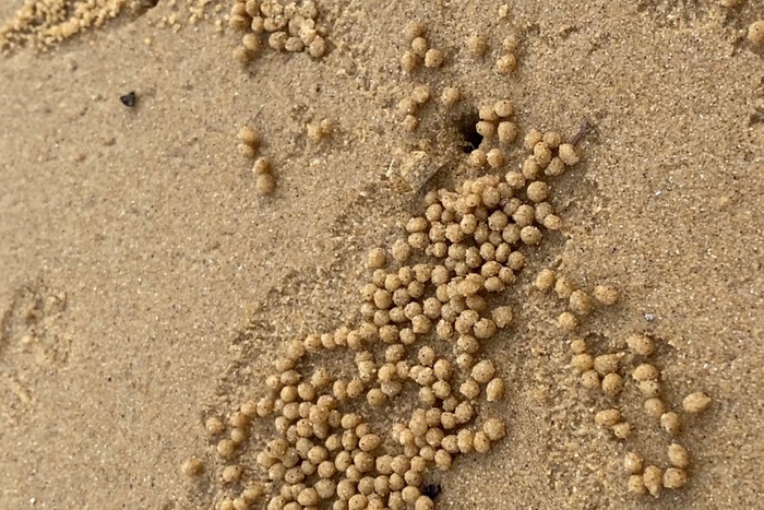 海沿いから汽水域までのエリアに棲む生物について紹介します。海沿いには西表島の固有種であるトゥドゥマリハマグリや砂の中の有機物を食べるスナガニがいます。また、マングローブが育つ汽水域には、絶滅危惧種のウラウチフエダイやサギなどさまざまな生物が共存しています。汽水域に棲む生物の繋がりが西表島を支えていることを実際に目で見て、知ることができます。
