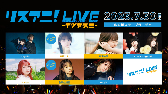 株式会社ソニー・ミュージックソリューションズ(本社:東京都港区、代表取締役:大谷英彦)は、2023年7月30日(日)に東京・立川ステージガーデンにて開催となる“リスアニ!LIVE SPECIAL EDITION ナツヤスミ” のチケット一般発売が、7月8日(土)10時よりスタートすることを発表した。