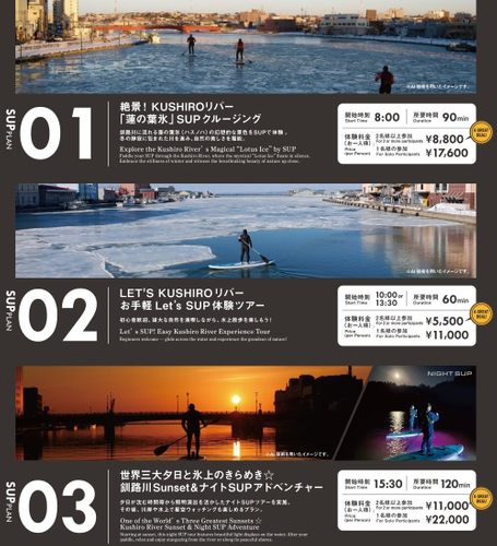 1. 絶景! KUSHIROリバー「蓮の葉氷」 SUP クルージング (SUP PLAN 01)