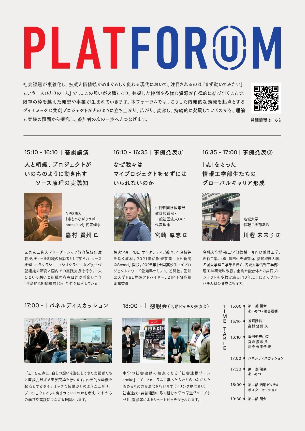 【名城大学】<参加者募集> 社会連携フォーラム(PLATFORUM)2025を開催します!(12月11日(木)15時~)