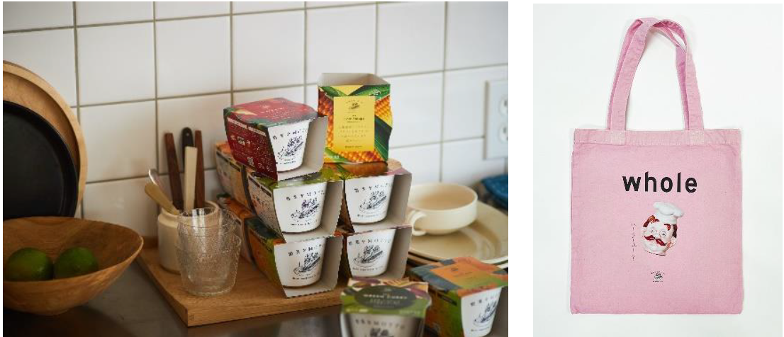 ポップアップストアではオリジナルトートバッグとスープ、wholeをセットにしたトートバッグセットも販売いたします。※各店舗数量限定、無くなり次第終了