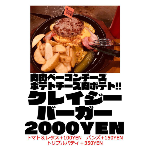 先週の登場以来、瞬く間に話題となり思わぬヒツトとなったバーガーです。熱々鉄板の上で、肉で肉を挟んだまさにクレイジーなバーガーです。