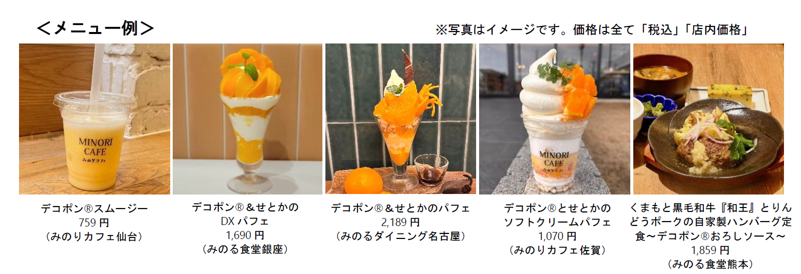 フェアでは、この時期に出荷ピークを迎える中晩柑(ちゅうばんかん)「デコポン®」「せとか」をふんだんに使用したオリジナルスイーツを各店舗で提供します。各産地の「デコポン®」「せとか」は、JA全農が運営する産地直送通販サイトJAタウンでも購入いただけます。(https://www.ja-town.com/shop/f/f1010/)
