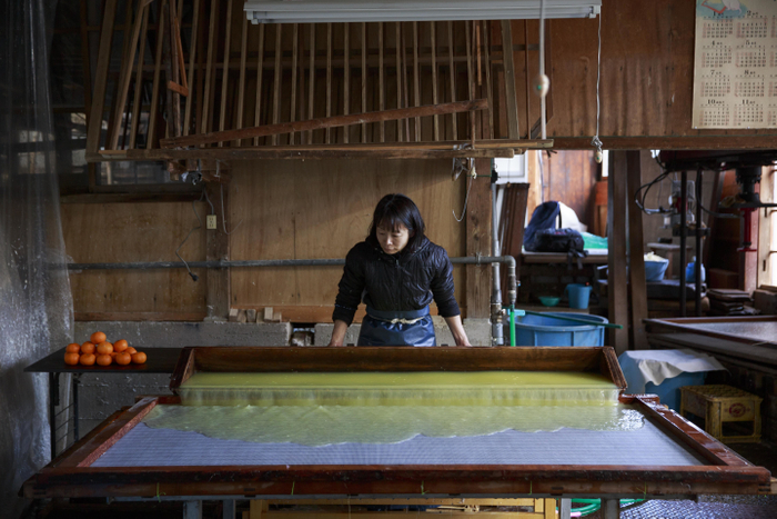 渋谷駅アート広告の製作は、越前和紙の老舗工房、五十嵐製紙が手掛ける「Food Paper」を使用しています。廃棄予定の野菜や果物、調理時に残った野菜の皮やヘタの部分等を原材料に作られた植物由来の自然に優しい紙です。適量の生産と消費を促し、食品ロスを出来るだけ出さず、サスティナブルな社会になることを目指した環境にやさしい素材として注目されています。広告ポスターへの活用は今回が初の試みとなります。