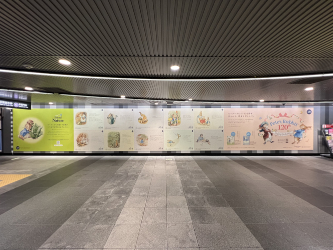 株式会社ソニー・クリエイティブプロダクツ(本社:東京都港区、代表取締役:大竹 健)は日本におけるマスターエージェントとしてライセンスを管理する「The World of Beatrix Potter(TM)/Peter Rabbit(TM)」において、絵本『ピーターラビットのおはなし』出版120周年プロモーションの一環として、廃棄野菜や果物を再利用して作られる紙「Food Paper」を活用した巨大なアート広告「Friend to Nature」を2022年3月21日(月)~27日(日)までの期間、東急田園都市線渋谷駅にて展開します。