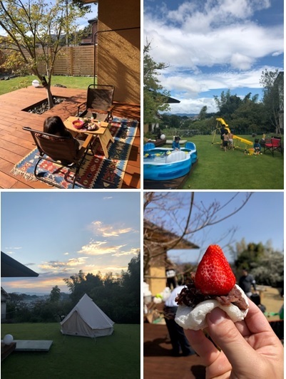 そんなたくさんの生き物が集まる庭は、緑くんだけでなく、一家の友達たちも大好き。夏には虫取りやプールで水遊びをしたり、秋には庭に植えた木々の紅葉を楽しみながらおうちでキャンプをしたり…。冬になると、餅つき大会をして、家庭菜園で育てた苺を使ったいちご大福作りに大忙し。