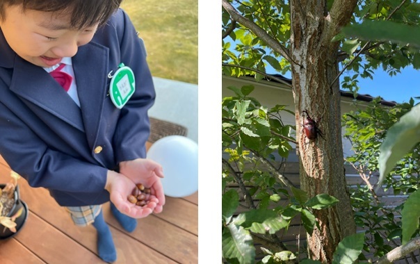 今では、どんぐり拾いができるほか、近くの森からカブトムシまでやって来るようになりました。他にも、どんぐりの実を食べに野うさぎがやって来たり、ヤマザクラになったサクランボの実を食べに野鳥がやって来たり…