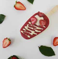 ミニストップの「練乳いちごパフェ」をイメージし片手で味わえるアイスバーです。アイスクリームに苺ソース、ホイップクリームといちご、練乳に見立てたホワイトチョコレートをトッピングしました。