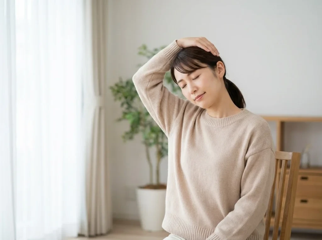 実際には、首の後ろだけでなく、首元から肩までのつながりが落ち着いているかどうかで、寝たときの違和感が変わることもあります。