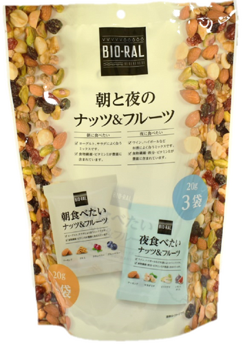 ①朝と夜それぞれのシーンに合わせたナッツ&フルーツ