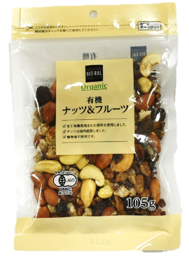 カシューナッツ・アーモンド・アプリコット・いちじく・2種類のレーズンすべてが有機栽培された原料を使用。ナッツは国内で焙煎しました。