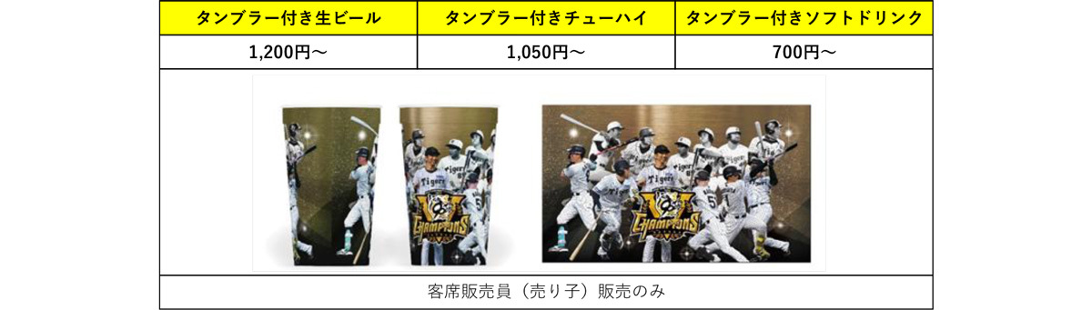 リーグ優勝の原動力となった監督・選手と歴代V戦士の勇姿が刻まれた、限定クリアファイルを是非手に入れてください!当日は、優勝記念商品として「リーグ優勝 タンブラー付きドリンク」も販売しますので、併せてお買い求めください。