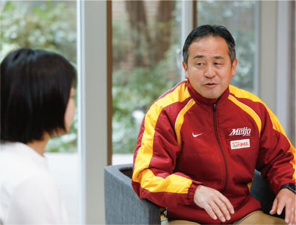 わたしは女子駅伝部の監督であるとともに名城大学法学部の教員でもあります。教員という立場から話をさせてもらうと、部員たちにも、学生一人ひとりにも、各々が自分で生きていく力を身に付けてほしいという願いがあります。わたしが駅伝部に自主性を促したのもそこに理由があり、指示がないと動けないのでは、環境が変わったときや、自分が主体となってなにかをするときに苦労します。簡単には身に付かないかもしれませんが、時に立ち止まり、自分と向き合ってください。いまの自分に何が必要なのか見えてくることがあります。あとは、それを実行するだけです。