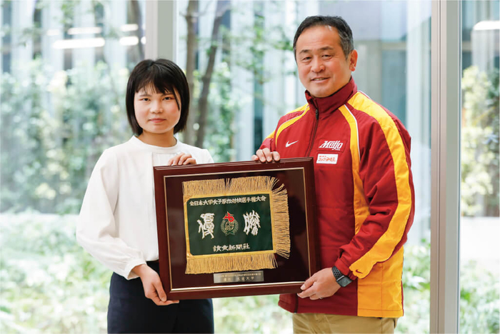 日本一の選手になる。それにはひたすら鍛え続けるしかない。本人に模範となる意識はなかったが、周囲の選手に変化が起きはじめた。赤坂の、競技と向き合う姿勢に影響を受けた選手たちは、自らの意思で取り組むようになっていった。その努力が結実したのが、2017年。4回生になった赤坂がキャプテンとして臨んだ全日本大学女子駅伝対校選手権大会だ。3区を任された赤坂は、先頭でタスキを受け、そのまま4区へ繋いだ。4区で一旦は先頭から後退したものの、5区で再び先頭に立ち、最終6区の玉城が首位の座を譲ることなくゴールテープを切った。