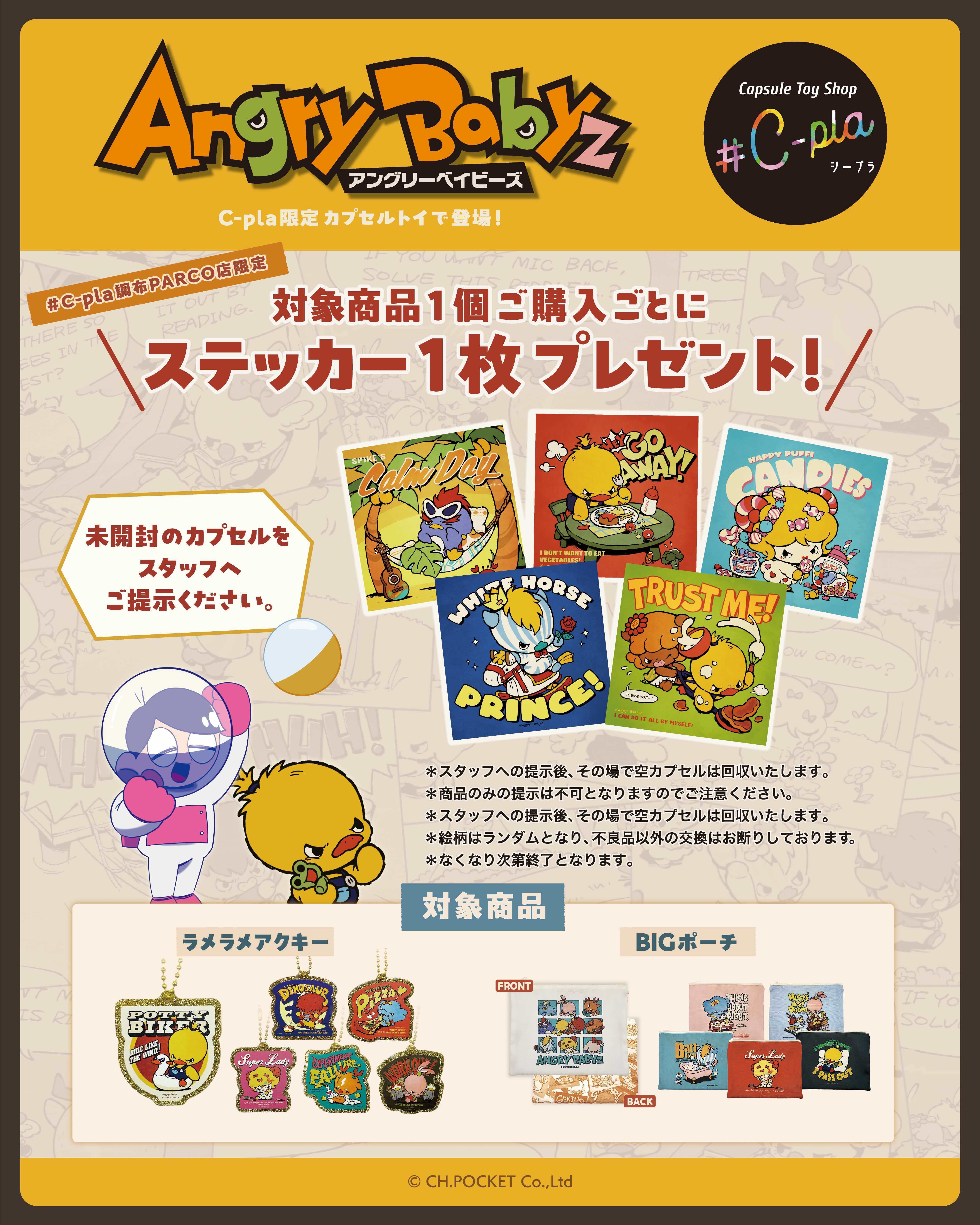 『AngryBabyz(アンベビ)』の生みの親、有限会社クリエイティブハウスポケットがある調布店では、初のカプセルトイ化を記念して特典のノベルティステッカー配布が決定。
