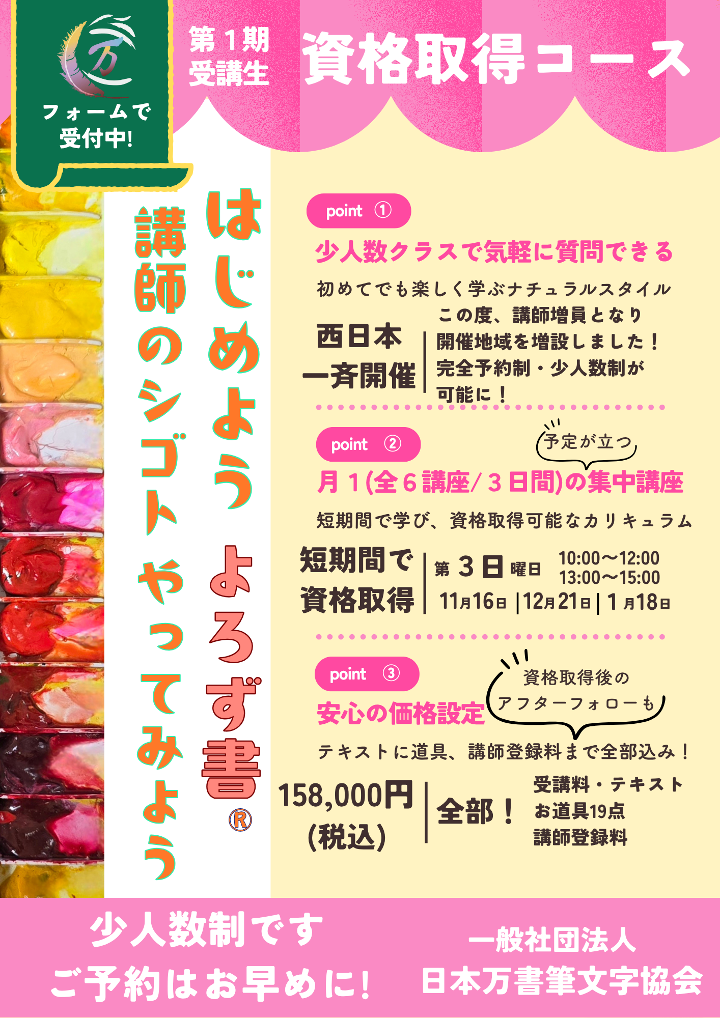 ・創作書画よろず書® 第 1 期 認定講師資格コース