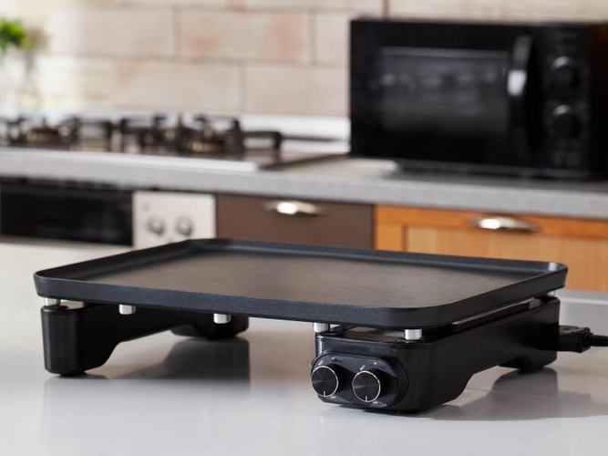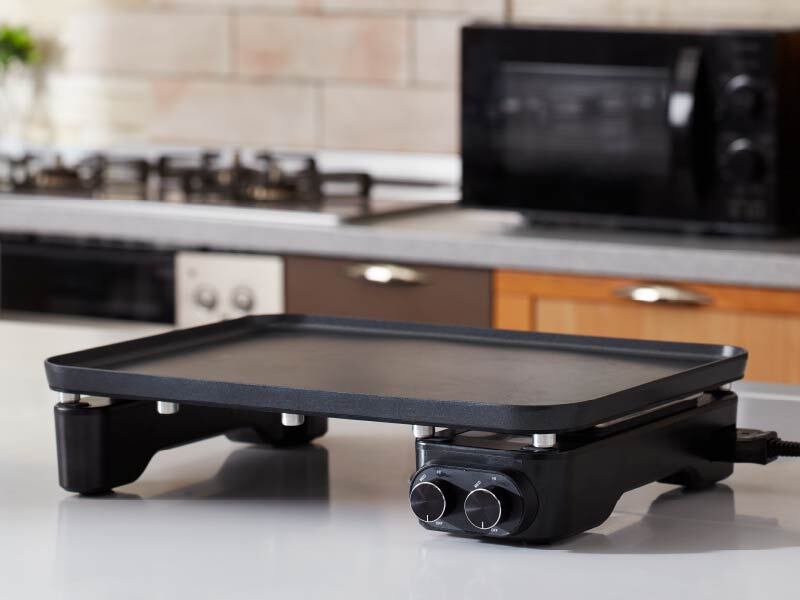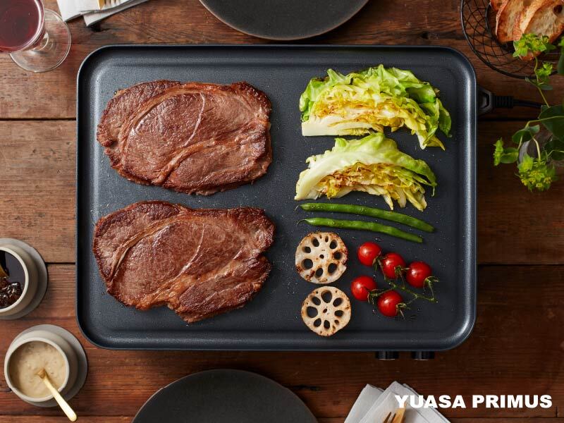 プレートは全面での調理のほか、左右を別々の温度で調理することが可能で、食材ごとに適した火力での同時調理や、片面で作りながらもう片面で保温することができます。