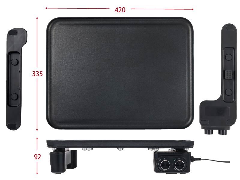 本製品は、温度を細かくコントロールできる特殊フィルムヒーターを内蔵することで、プレートを左右2面に分けて各々の面で温度設定をすることができます。片面で調理しもう片方の面で保温しながら食べる事ができるようになりました。また、左右2面を使って別々の料理を同時に調理することが可能なため、料理が出そろうのを待っていて料理が冷めてしまう事も減らせるようになりました。
