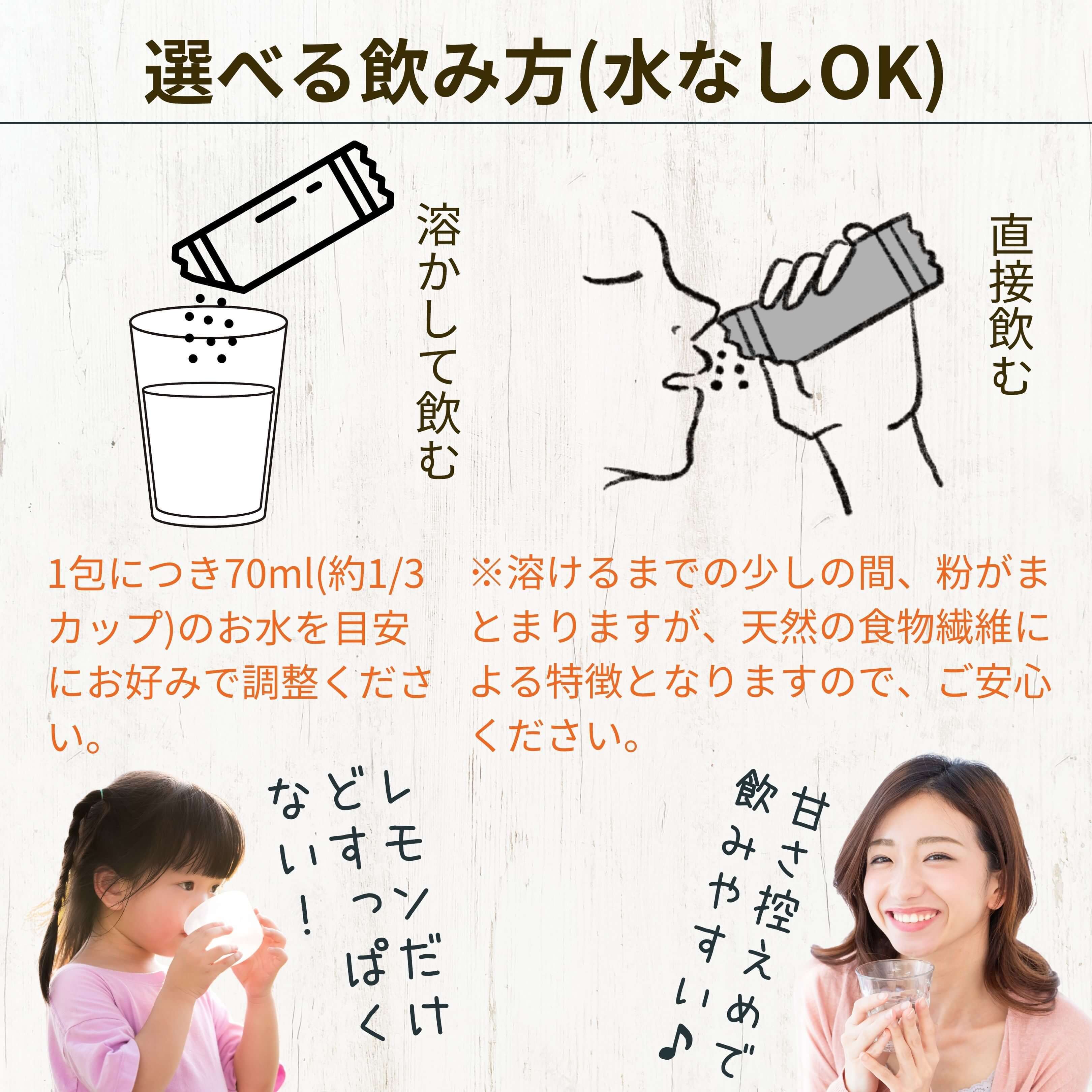 タイパ(タイムパフォーマンス)が重視される現代において、いつでもどこでも気軽に飲めるのは重要なポイントです。水に溶かして飲むのはもちろん、水なしでも美味しく飲めるように様々な配合をテストし、開発しました。