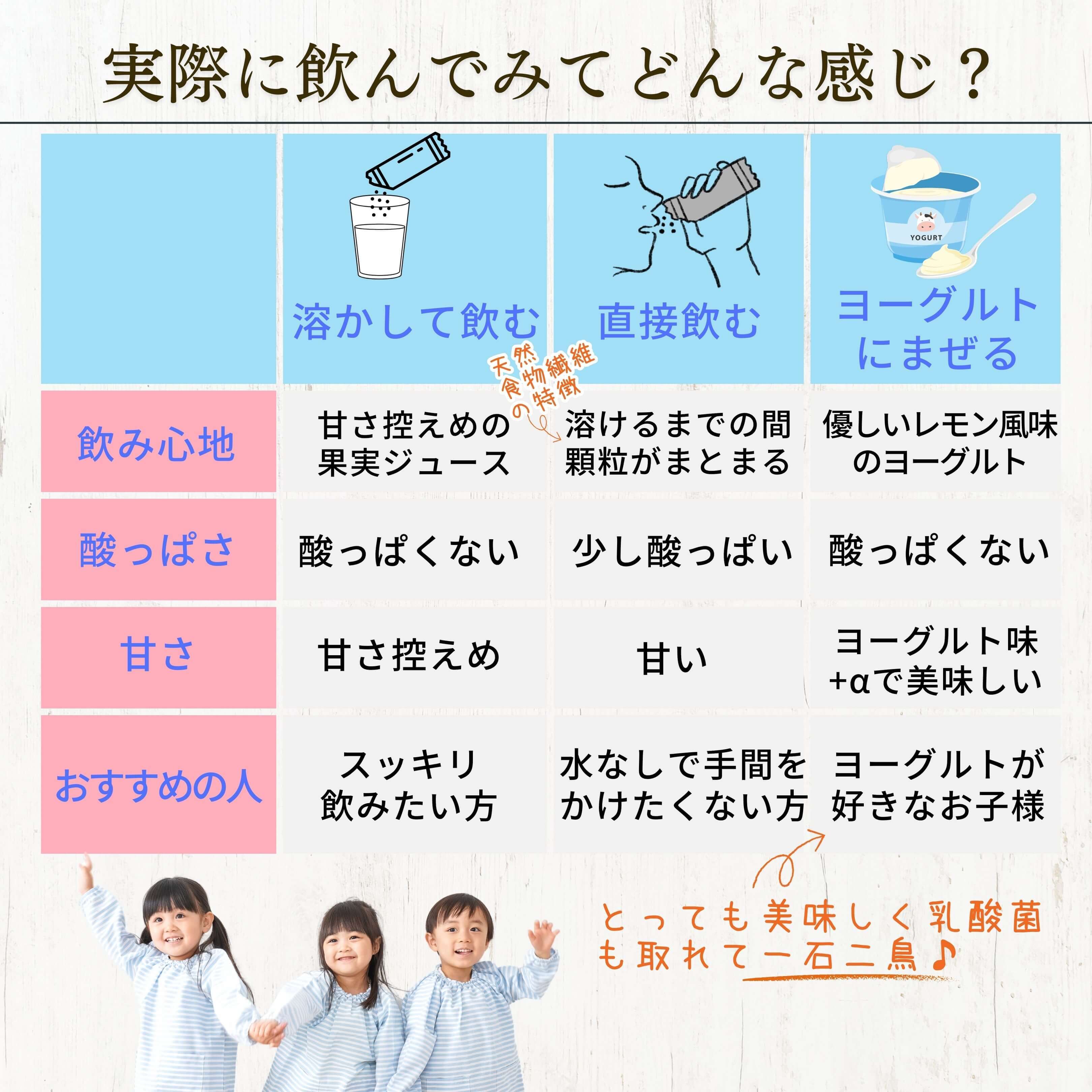 甘さ控えめのレモン風味となっておりますが、子供も飲める事を目的にしているため味と原料には妥協出来ませんでした。虫歯の原因にならないマルチトールをメインに、ステビアの葉など天然素材で構成しています。