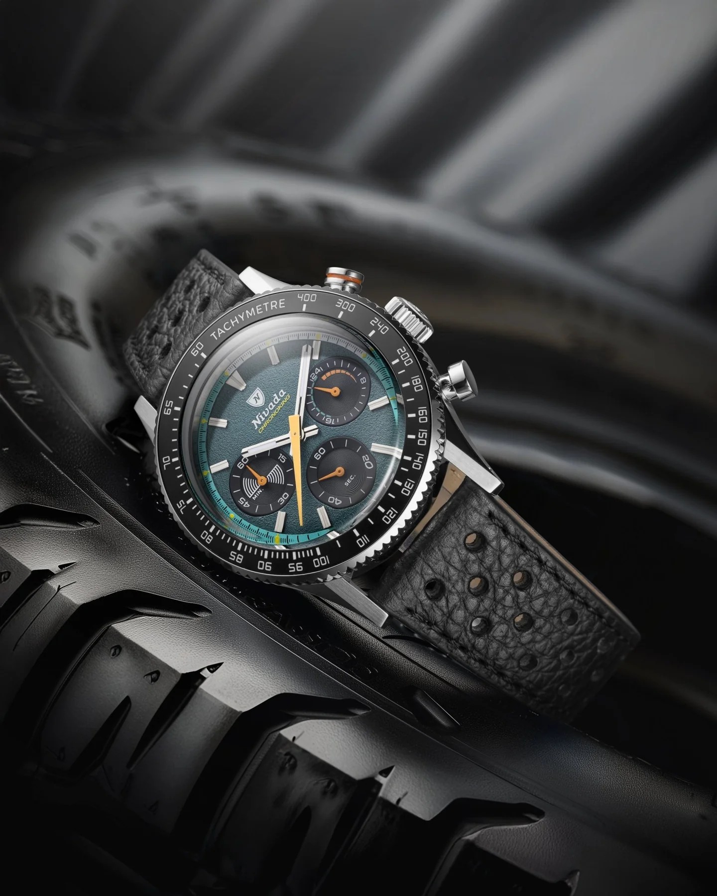1970年代のレーシングウォッチに見られた特徴的なフォルムやカラーリングを現代的に再構築。38mmという程よいサイズ感のステンレススチールケースに、ドーム型サファイアガラスを組み合わせ、クラシックな雰囲気を漂わせながらも日常使いに適した耐久性を備えています。艶やかなブラック、洗練されたシルバー、深みのあるフォレストグリーン、鮮やかなロイヤルブルーなど、多彩なカラーバリエーションを展開。スポーティかつ上品なスタイルで、オン・オフを問わず着用できるデザインに仕上げられています。
