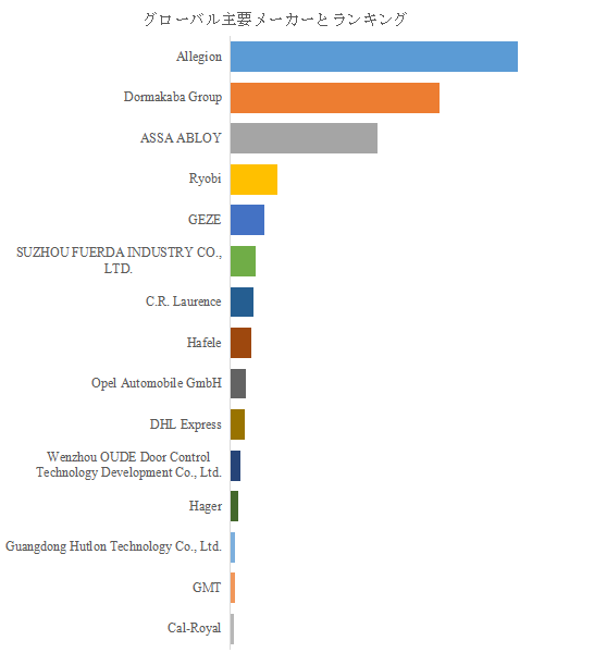 第13章では、ドアクローザー市場の主要メーカーについて、基本情報、製品仕様と用途、販売量、収益、価格設定、粗利益率、主力事業、最近の動向などの詳細情報を紹介します