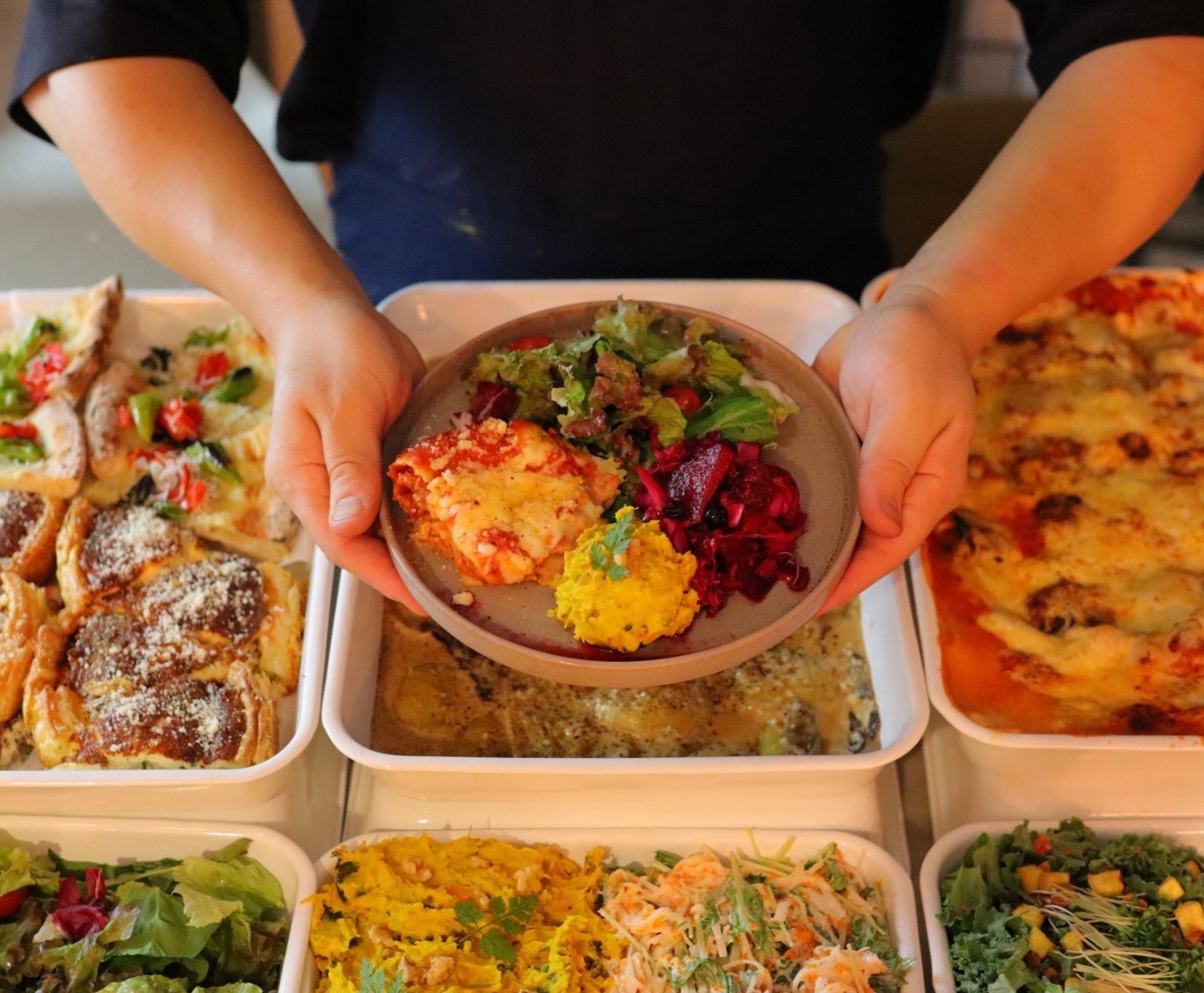 ・主菜4種から1つ、副菜6種から2つをセレクトできるデリプレート