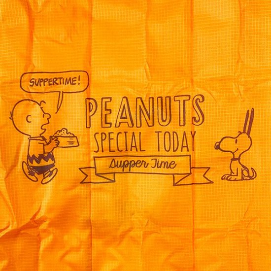 元気が出るビタミンカラーです。チャーリーブラウンがスヌーピーのご飯を運んであげていますね♪こちらでも喜んでいるスヌーピーのおみみがピーン!