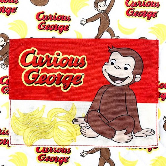 おさるのジョージやバナナのイラストの総柄で、前面にはポケットもついています。