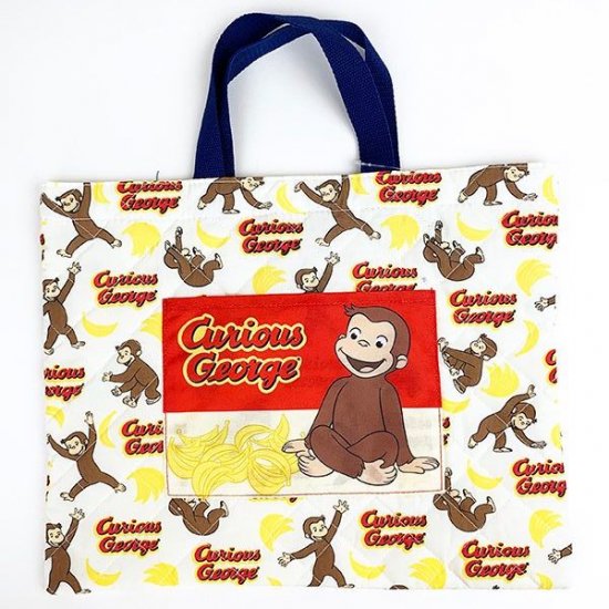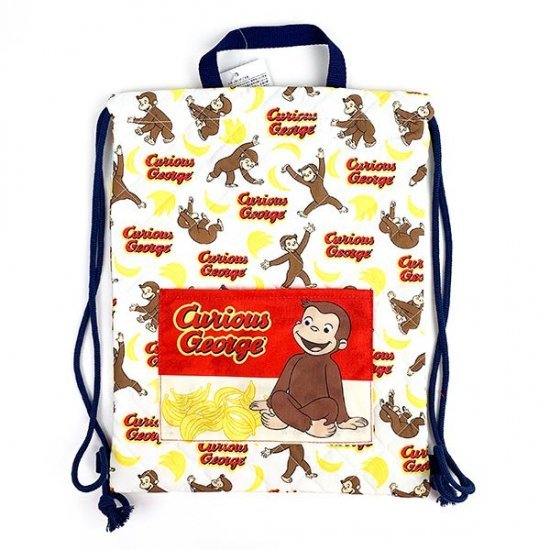 おさるのジョージの通園通学グッズが新入荷しました。体操服入れや上履き入れなど、キルティング素材の手作り風アイテムが勢ぞろいです。