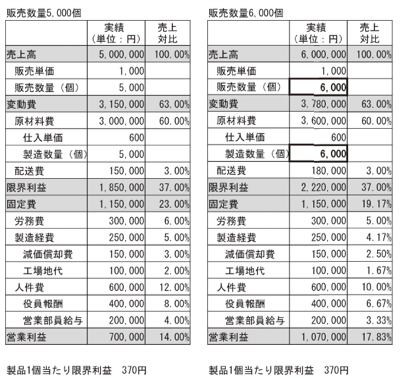 変動損益計算書と製品1個当たりの限界利益の変化