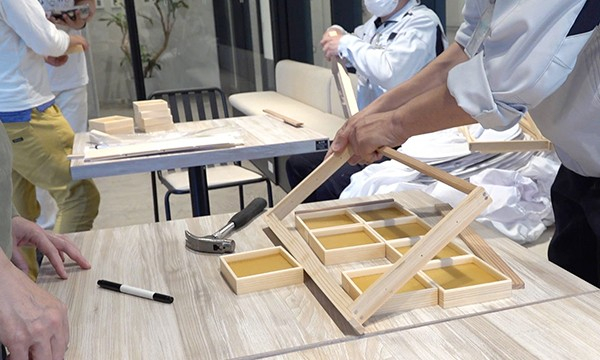 100%蜜蠟使用の巣礎を使用しコムハニー枠を手作業で作り、ミツバチの巣となる巣枠に入れます。10歳以上の方を推奨しており、安全に配慮した形での作業となります。