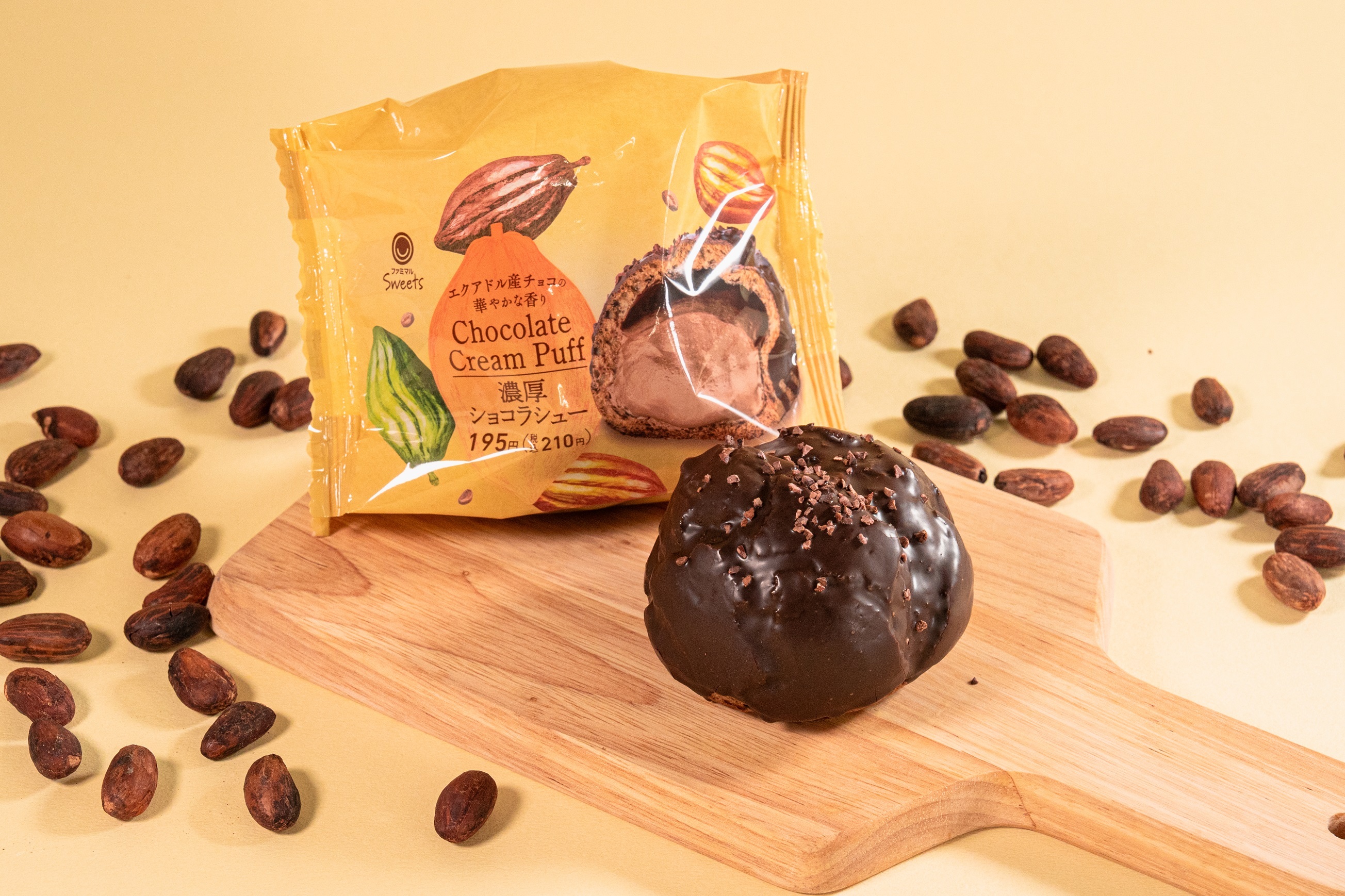 【内容】「エクアドル・スペシャル」を使用したコーティングチョコ、パフ、クリームを組み合わせた贅沢濃厚ショコラシューです。
