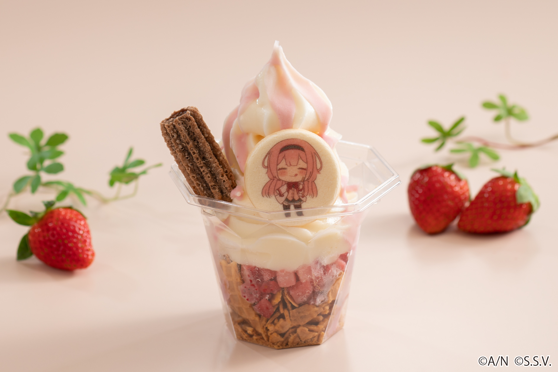 周央さんが好きなチュロスも味わえるサンデーや、春らしい苺のデザートプレート、かわいい周央さんが描かれたラテの全3種類のメニューをお楽しみいただけます。