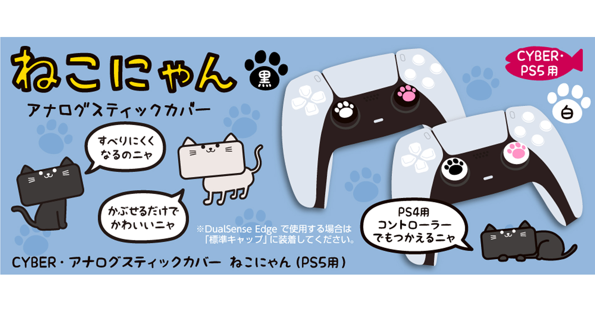 『CYBER・アナログスティックカバー ねこにゃん プラス(PS5用)』『CYBER・アナログス ティックカバー ねこにゃん(PS5用)』