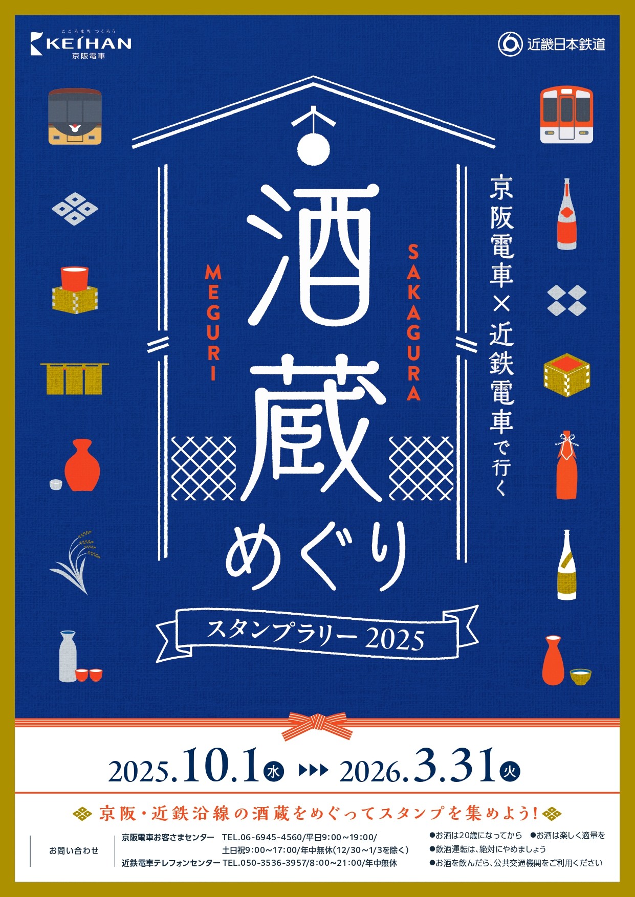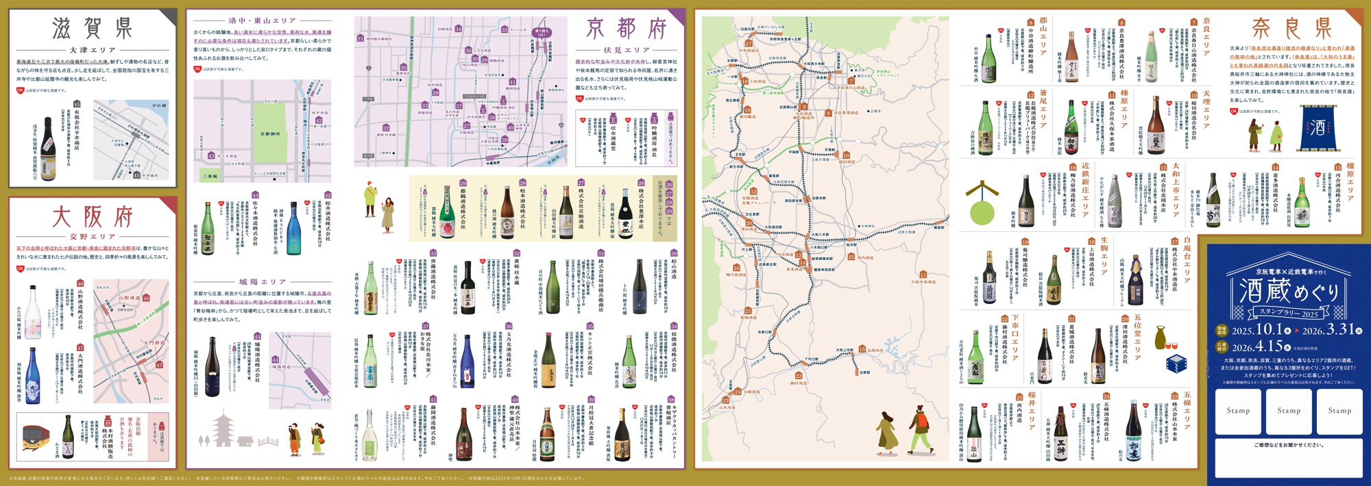 京阪電気鉄道株式会社(本社:大阪府枚方市、社長:井上 欣也)と近畿日本鉄道株式会社(本社:大阪市天王寺区、社長:原 恭)は、2025年10月1日(水)から2026年3月31日(火)まで、京阪・近鉄沿線の47酒蔵および3店舗が参加する「京阪電車×近鉄電車で行く 酒蔵めぐりスタンプラリー2025」を新しい酒蔵を追加して実施します。