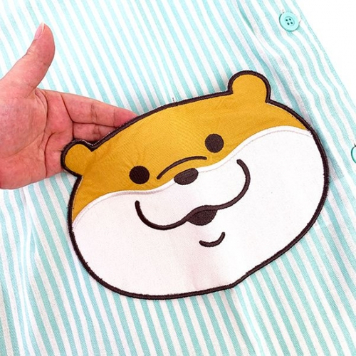 「かわいい嘘が得意だからカワウソっていうの。なんちゃって!」でおなじみ。Twitterでバズったり、ラインのスタンプなどで人気上昇中の「可愛い嘘のカワウソ」から刺繍ワッペンポケットがキュートなエプロンが登場です◎パステルカラーのストライプが爽やかな雰囲気を演出してくれて、サイド開きですっぽり上からかぶって着たり脱いだりできます。保育士さんや看護師さんにもおすすめです♪