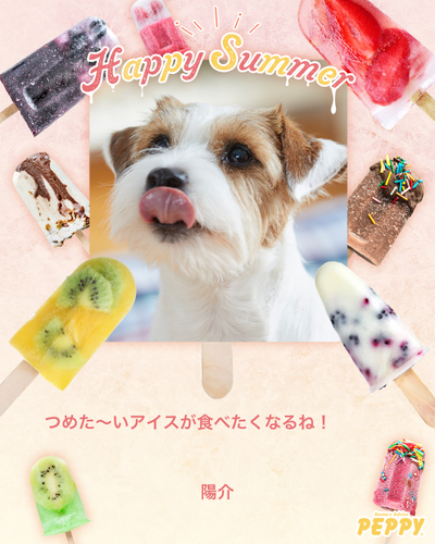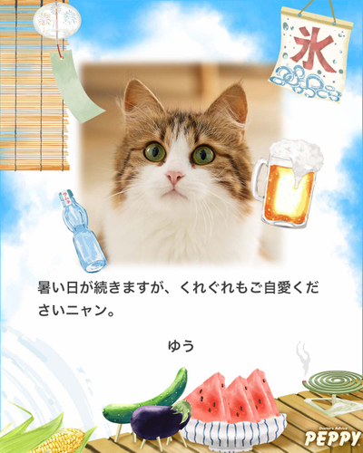 投稿された暑中見舞いカードは、ペピイのホームページで夏の季節にピッタリなデザインの特別なカードとして紹介され、皆様が投稿された挨拶状を閲覧可能。4種類のカード枠から好きなものを選ぶことができます。