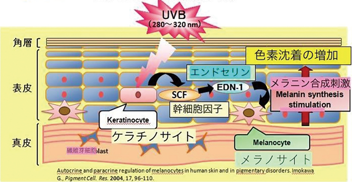 ノビレチンは、メラニン生成酵素であるチロシナーゼを活性化させる作用のあるエンドセリンとステムセルファクターについて、その動きを60%抑える働きがあることが判明しました。