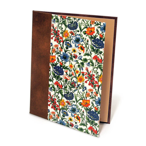 チョコレートカラーを基調とした、上品なボタニカル柄の布張りカード。