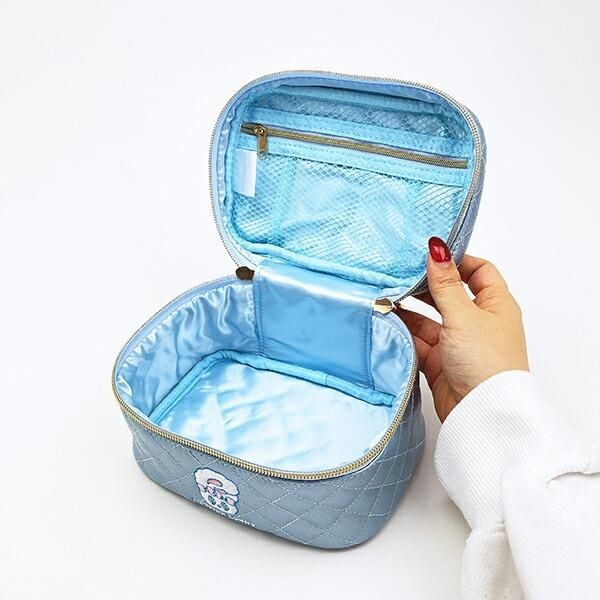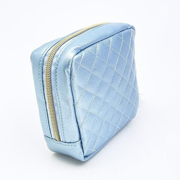 こちらはクリームバニー キルティングポーチ サイズ:12.5cm×13.5cm×5cmです。水色×光沢で派手可愛い!スクエア型で使いやすいです。