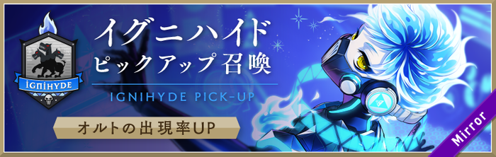「イグニハイド ピックアップ召喚」では、ピックアップ対象のキャラクターの提供割合が、同じレアリティの他キャラクターよりもアップいたします。