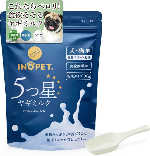 多くの飼い主さんの困りごと。それは、大切なペットの水分補給やごはんの好き嫌い。もっとゴクゴク飲んでほしい。もっとモリモリ食べてほしい。そんな声から生まれたヤギミルクは、完全無添加・栄養満点なだけでなく、胃腸にやさしく・乳アレルギーが起こりにくい5つ星のヤギミルクです。添加物を一切使用しておらずお腹が緩くなる原因といわれる乳糖の含有量が牛乳よりも少なく、牛乳アレルギーの主な原因のたんぱく質の一種「αS1カイゼン」が、ほとんど検出されず、アレルギーを起こしにくいのも特徴です。