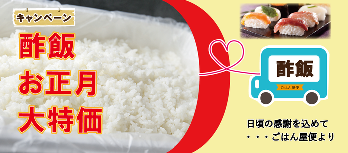 ごはん屋便 業務用ごはんデリバリー 「業務用酢飯 お正月特価セール」 飲食店運営の皆様への支援と1年の感謝を込めてご提供いたします。